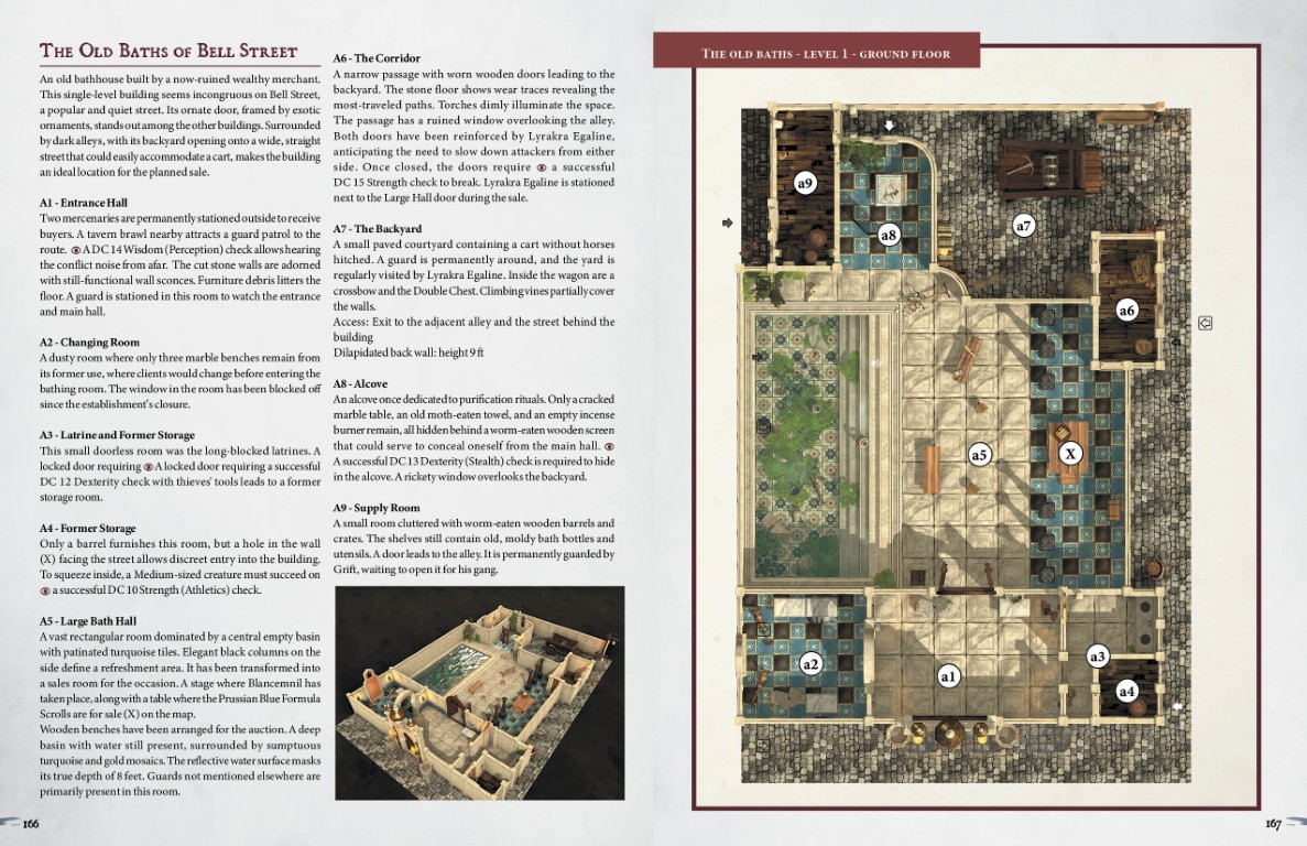 - Six shops: A fence, an alchemist, a forge and artificer's workshop, a secondhand store that's also a magic item shop, a strange boutique that sells only information
